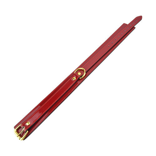 Accessorise and equip your BDSM scenes with this stylish and eye-catching collar designed with both beginners and advanced players in mind. The soft black faux-suede lining makes this gear comfortable to wear for those new to the scene, while the glossy red finish will make this beautiful collar a favourite in any seasoned dom's toolkit too.